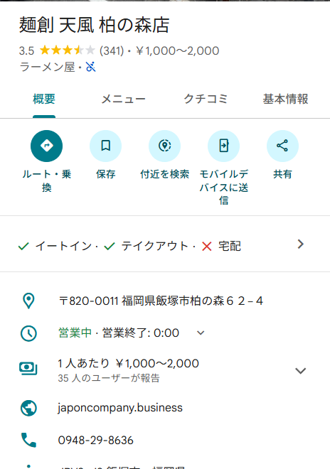 Google検索やGoogleマップにお店の情報がしっかり表示される仕組みが整っているので、